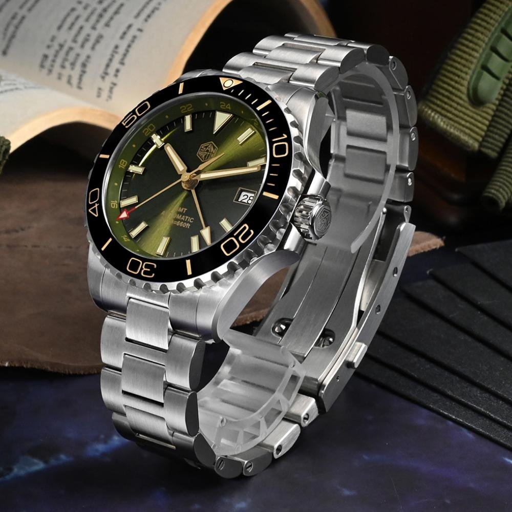 Whether you’re diving into the depths of the ocean or attending a business meeting, this GMT diver’s watch effortlessly combines performance with style. With its luminous hands and markers, you’ll always have clear visibility, no matter the time of day or night. The robust 316L stainless steel ensures this watch can stand up to the challenges of daily wear while maintaining its polished, refined appearance.